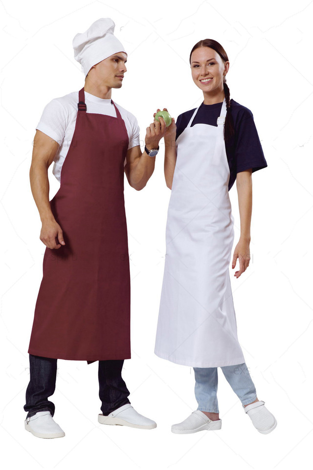 Фартук удлиненный на завязках в области талии и цельнокроеной грудкой. Длина верхней бретели регулируется с помощью фастекса.